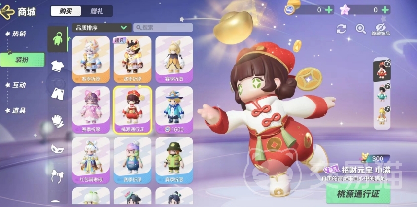 当然,同为非凡服装,其中也是存在一些风格不一的,就比如下图这个“招财元宝·小满”,她的帽子和裤子都采用了极为喜庆的大红色调,另外衣服上的结也让人看到了中国结这种颇具国风气息的元素,同时其帽子和裤子上的铜钱和元宝也很容易让人联想到传统文化中的财神,所以其吉祥喜庆的气质自然很好的呈现了出来。