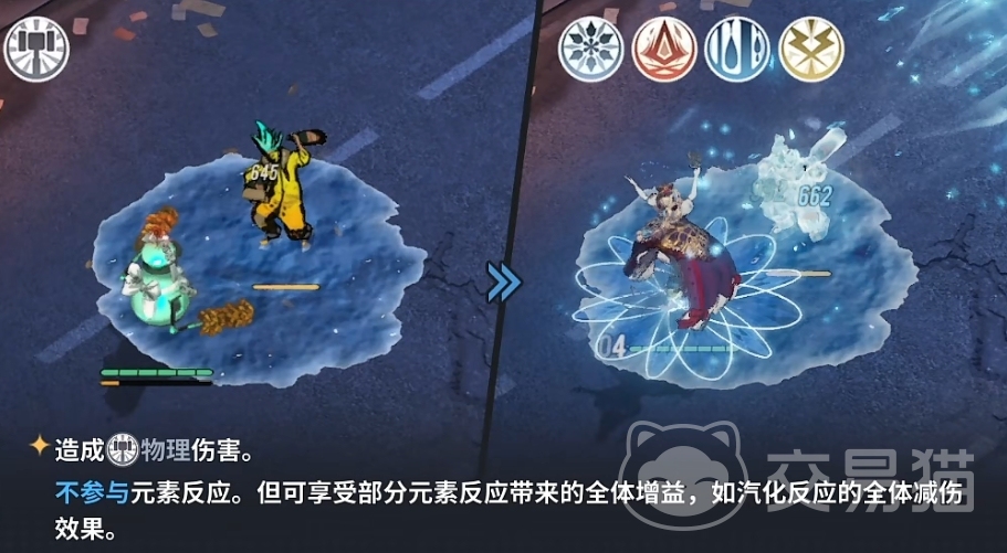 最后就是比较特殊的物理系,除了不与其他元素反应以外,物理系却能受收获关于元素之间的加成或减益效果 。举个例子,雷火之间的搭配便可以给我们物理系的职业提供额外的增伤效果。同理,面对一些敌人,也能更好的依靠物理系的绝对中立来进行抵御。