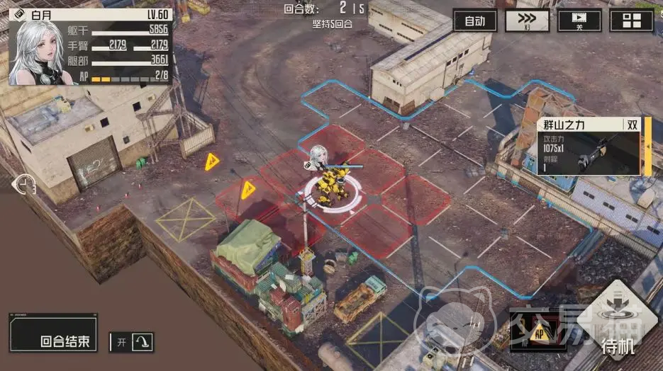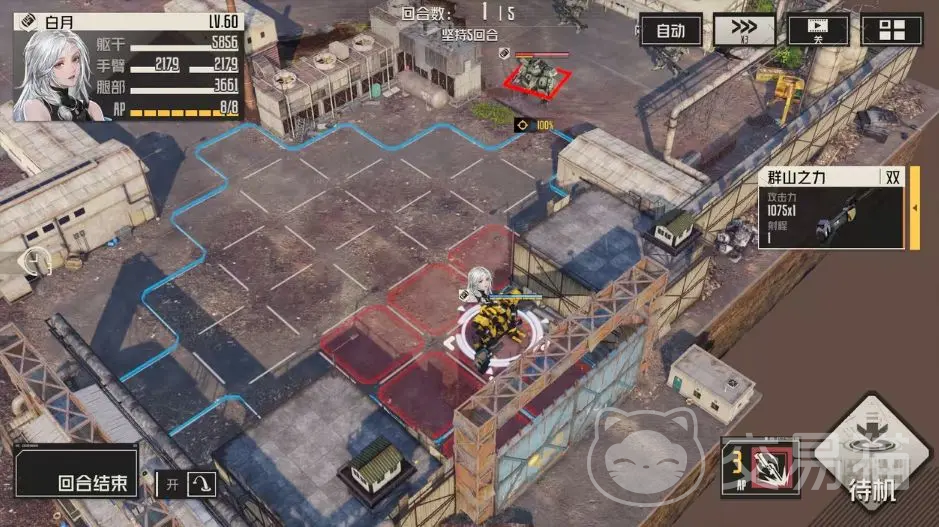 这一关对手的平均等级在40,看似好像比较难的一个关卡,其实只要给白月装上了退敌之芒,然后在第二回合的时候,消耗5点AP开始行动,找到第一个目标之后,消耗3点AP开启技能,击破一个部位之后,就利用普通攻击追击,然后攻击充电桩,移动到对手身边之后再次使用这个技能,这样就可以达到完美成就了。