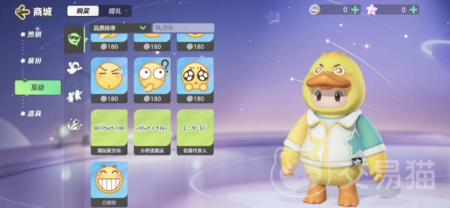 当然,元梦币光靠免费获取的话很难短时间凑够买一套装扮的钱,不过相比装扮,它里面的许多互动表情也是可以通过元梦币购买的,并且价格要低很多,基本上都只要180元梦币就能买到。