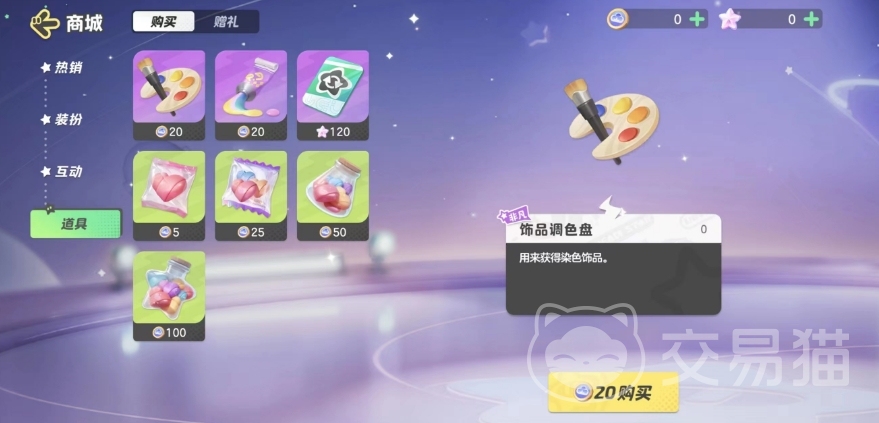而这还不是能用元梦币买到的最便宜物品,实际上游戏中还有一些偏向于功能性的道具也可以通过元梦币获取,最便宜的道具“甜蜜初心”其售价甚至只有5个元梦币,所以买它们会更加容易,而且它们往往能够帮助你进行服装染色,角色改名和增加好友亲密度等多种实用的操作。
