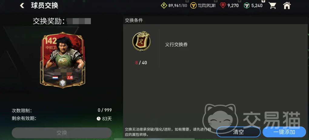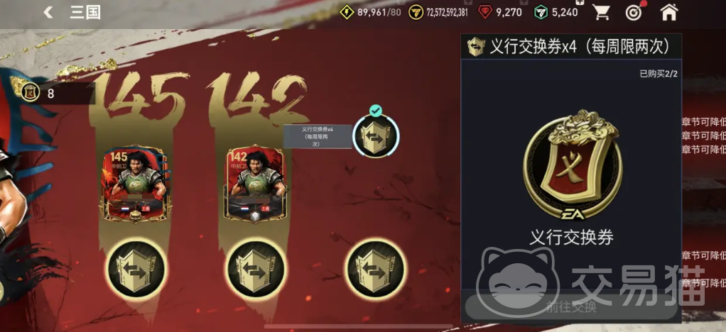 在三国联名活动中,你可以选择一位心仪的球员作为你的目标,然后通过完成专属任务和收集粮草,来兑换他的球员卡。每位球员都有不同的等级,从138到142,等级越高,属性越强,但也需要更多的粮草和任务完成。