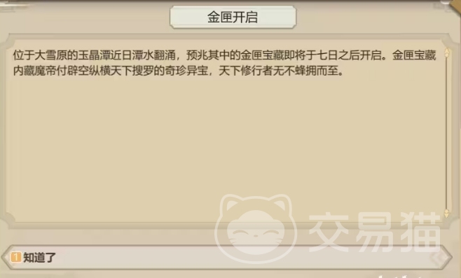 在游戏中大家其实想要开金匣子的话是需要去解锁玉晶潭秘闻的,而且有三次机会可以开启,项想要开启就必须去大雪原,触发的地点就在大雪原上面,可以派弟子去这个地点进行历练,在将大雪原的所有地点都解锁之后,就会出现一个隐蔽的地点,这个地点就是玉晶谭,在上面是可以提前解锁的哦,在解锁之后大家派出弟子就会获取秘闻,这个秘闻开启之后是有六个选择的,在选择的时候大家就会看到后面括号中的要求。