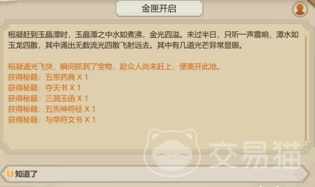 这个要求并不需要大家全部都满足,满足其中一项就可以啦,选择了第一个选项之后大家就可以去追符文环绕的书匣,在追上之后获取的就是五本秘籍,如果大家有炼丹的弟子,就可以选择五帝药典这个秘籍,这个秘籍是可以解锁好几个丹方的。