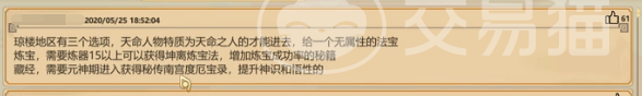 然后就可以解开玄空洞秘境,能够历练了。可以使用神行符和千里神视符来增加历练的速度和范围。在玄空洞历练时会遇到一个选项:进入琳琅仙府。你需要让没有天谴值的小人去历练,这样才能获得最大的收益。这时候进入仙府,可以拿到符咒天通洞神符,再加45点基础心境、秘籍天机化运法,提高机缘2成。