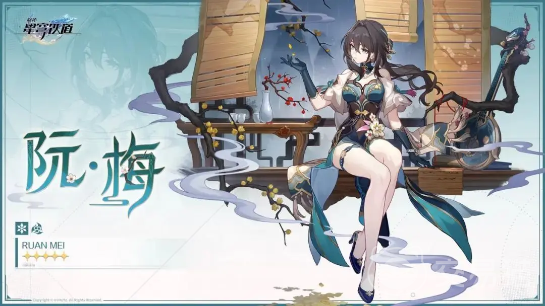 最后一个是阮梅,从立绘看这个角色十分的有魅力,非常漂亮大气的一个角色,立绘一定戳中了很多的人的心吧,这是一个五星的限定角色,同时也是冰系的协同命途角色,也是在布洛妮娅之后的第二个该类型的角色,强度是可想而知的了。