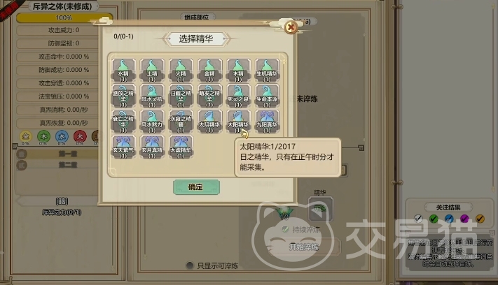 而且其他的角色其实都是可以服用丹药来加速自己灵气增长的,体修不用增长灵气,所以也用不上丹药,但是大家想在上面利用道具升级的话,其实也是需要先将丹药给淬炼的,相应的丹药在淬炼之后会变成精华,每一次炼体的时候这些精华加进去就会加速炼体的事件,而且大部分的精华也都是带有额外效果的,所以在使用精华的时候不要选择一些属性会相互克制的精华就可以了。