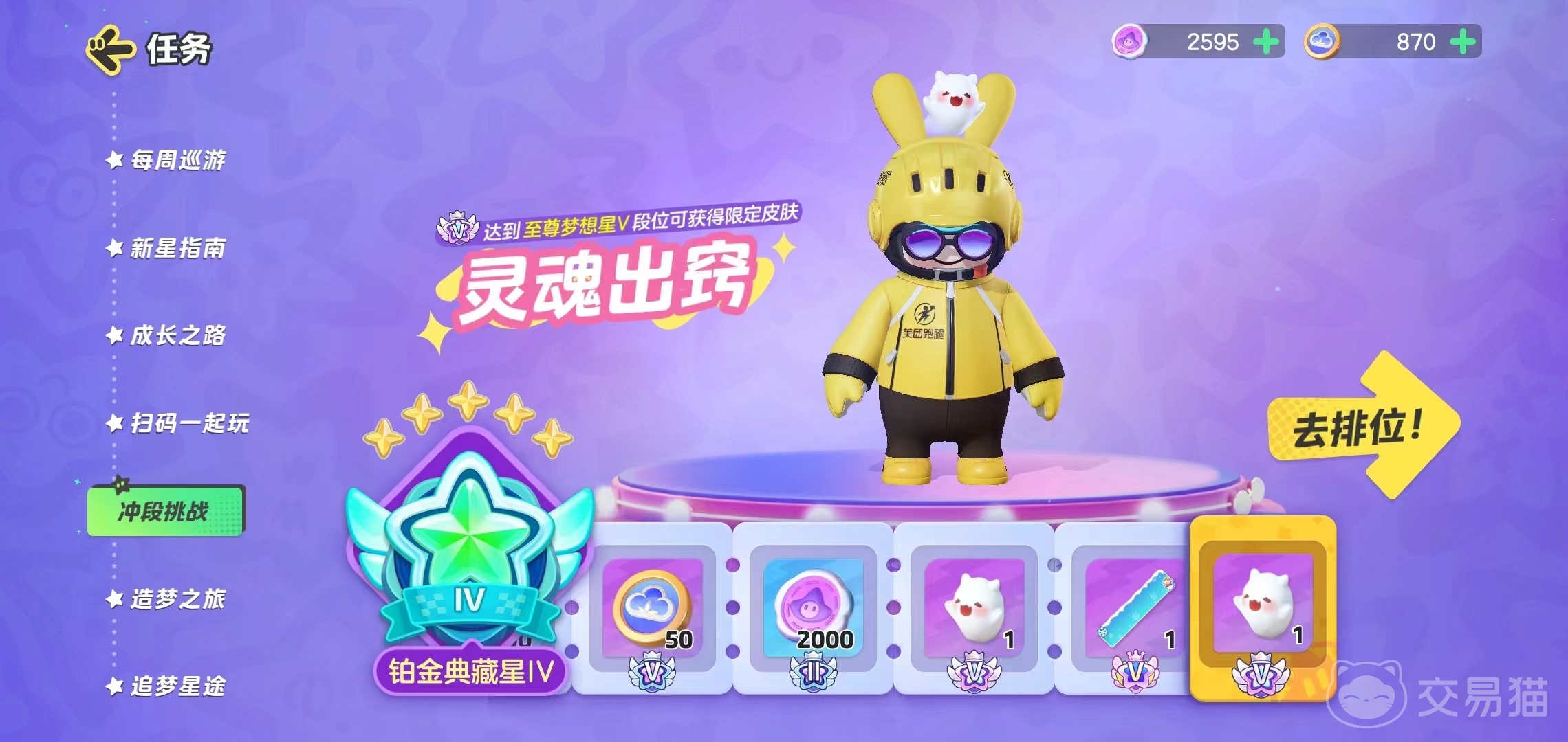 黄金领航星:这是中级玩家的段位,需要深入了解和分析游戏的机制和数据,优化和调整自己在元梦之星生存战中道具使用能力,与队友进行有效的沟通和配合,提升自己的战术和团队意识。