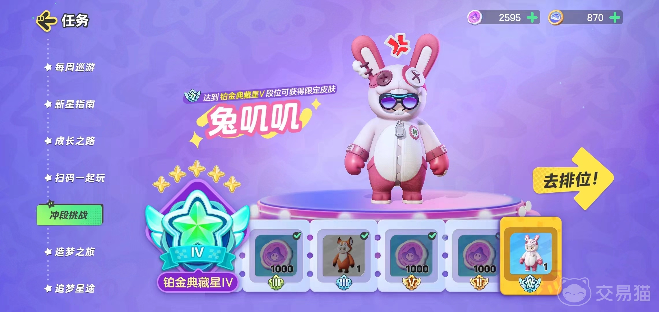 青铜小萌星:这是所有玩家的起点段位,需要学习、掌握元梦之星排位玩法的基操和规则,熟悉各种角色和地图,参加新手教学和练习模式,提高自己的能力水平。
