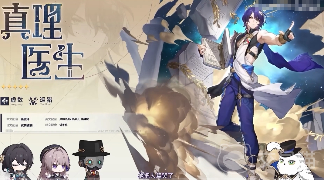 在这一次1.6的版本中大家是可以看到上面新出的三个角色,第一个是真理医生,这个角色是属于五星角色,从个性上面看来其实是有一点小自恋的,在使用技能的时候会释放出一尊自己的雕塑,如果想要获取这个角色的话,在上面是可以从万物皆流活动卡池中抽取的。