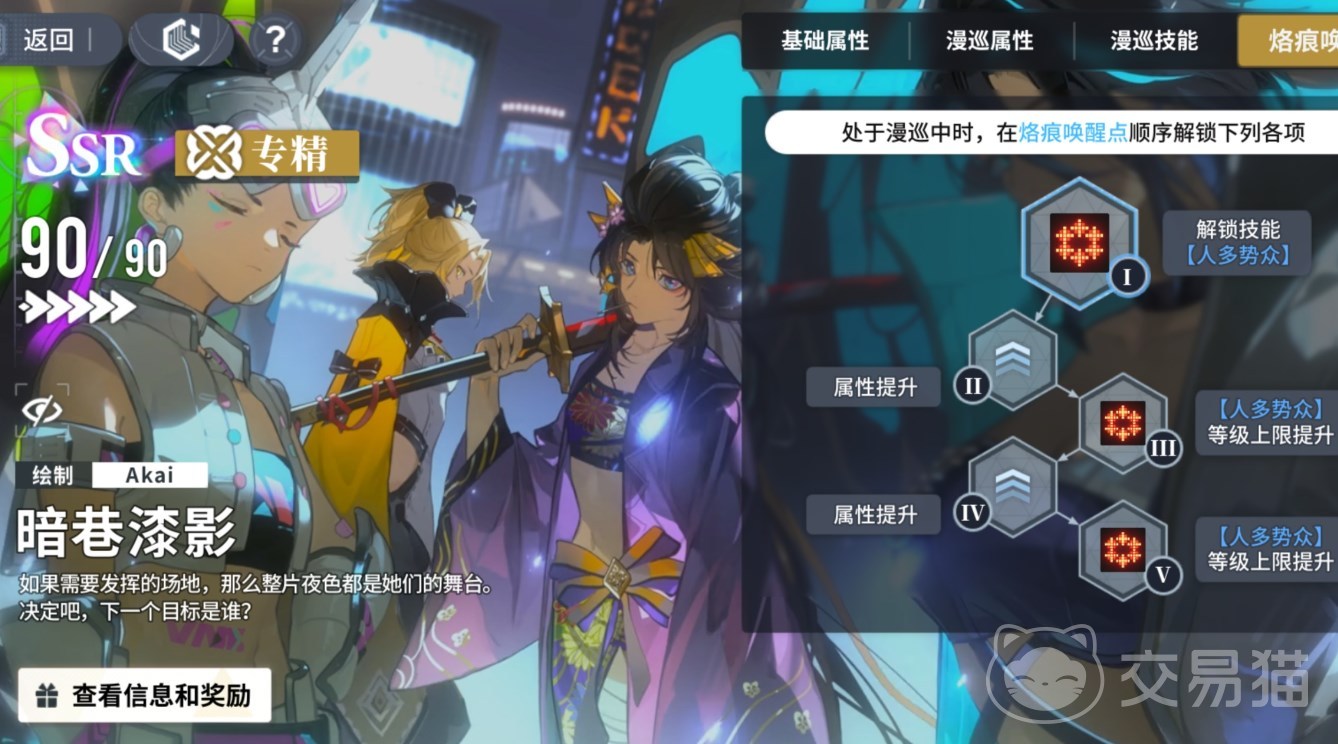 SSR的专精烙痕里暗巷是当前最通用的,T0级烙痕,而其他3个烙痕则要队伍里有2个对应属性的成员,算是各属性队必备烙痕。