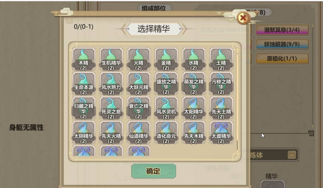 首先想要获取到精华玩家第一步骤开局的时候就要选择好相应的种族,妖族在游戏设定中有着强悍的体质更加适合体修,最主要的是妖都精血能够更好的淬炼肉身玩家开局的时候还是建议玩家收两个妖族血脉的弟子。仙道精华淬炼的时候会清空玩家所有强化的血肉和力量,要思考清楚。
