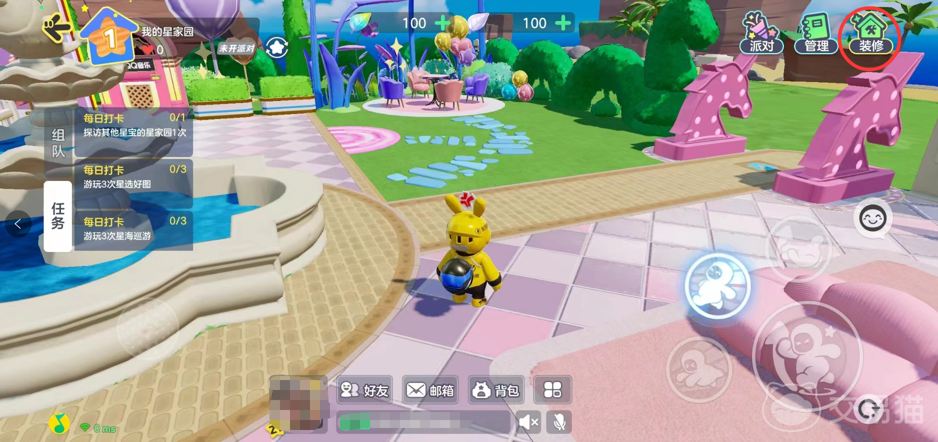 而在家园地图设定后,可以看到自己的家园的各种建筑和装饰物。而家园电视的位置就是按照之前我们装修放置的位置,大家可以不断地预设调整来星家园的电视位置。小编推荐想要主玩星家园的星宝们把电视放在一眼就能看到的地方,通过电视的选定内容来组织派对的话,人气目前来说是最高的,至于选什么节目就看你自己的品味了。