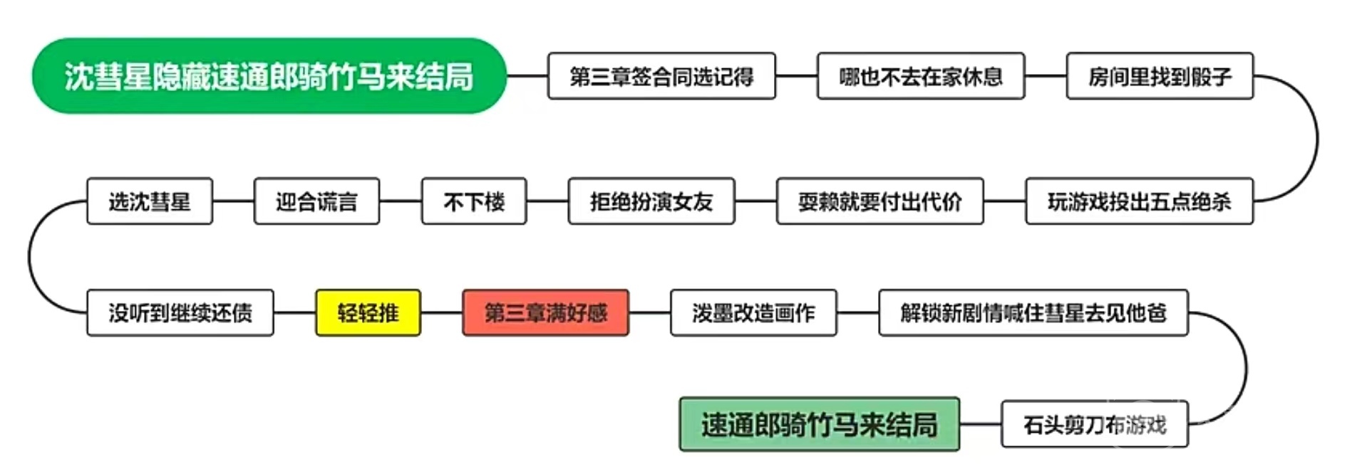 先说一下游戏当中沈彗星的结局吧,她的结局一共有三个,一个he结局是玩家们刷她的主线将好感度提高过后再和她父亲对话时选择第三个选项,第二个问题不选第三个问题选择第四个选项,就可以触发大团圆结局,第二个结局是谈恋爱结局,这里只要将三个问题故意答错就可以了,第三个be结局就是回答问题的时候在第二个选项当中随便选一个选项都可以触发,看玩家们自己的选择。