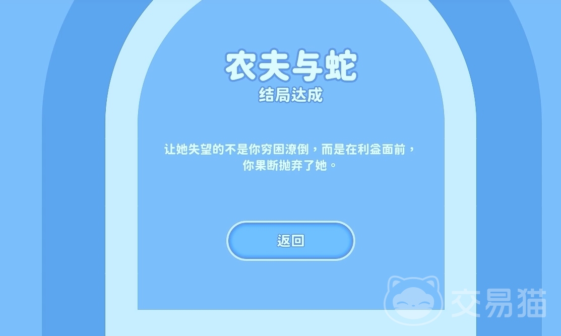 农夫与蛇:这一结局属于钟甄线的坏结局,需要你在成为钟甄公司的职员后,去找老板谈合作,然后触发他让你窃取公司机密的剧情,这里选择接受,之后钟甄就会对你失望,然后就会触发该结局。