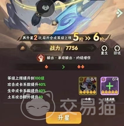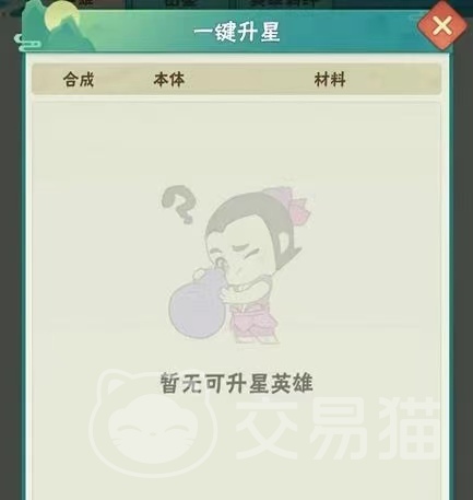 五星升到六星时是需要五星本体作为原材料,六星升到七星时是需要五星本体和同一个系列的五星英雄角色作为升星材料,新升到八星则是需要六星本体为材料,八星升到九星的话,就是需要八星的同系列英雄作为材料,九星升到十星的话是需要六星的本体和以及同系列的六星英雄角色作为材料,11星到12星是需要玩家们用六星本体和同系列的八星英雄角色作为材料进行的,以此类推,每一个升星都是需要有本体的。