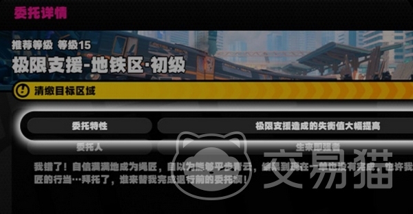可以接到地铁区、废料区、施工区、以及铁人三项拉力赛这四种委托,而且随着“绳网(玩家等级)”的提高,委托也会逐步开放进阶、中级、高级、专家级这几个难度选项,奖励也随之提高。