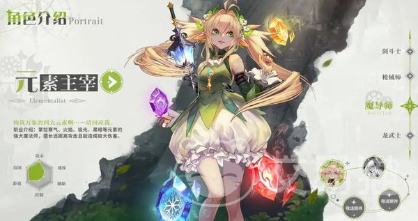 元素主宰:她是魔导师转职中的一个,外表看起来柔柔弱弱,但是却拥有纯粹的精灵魔法能力,擅长使用冰、火、雷、暗四种元素的法力来攻击敌人,她的所有技能全部归于自己对魔法元素的理解,在战斗时拥有超高的输出能力并且攻击距离相对来说比较远,攻击范围还非常的大,在前期用来刷图效果非常强。
