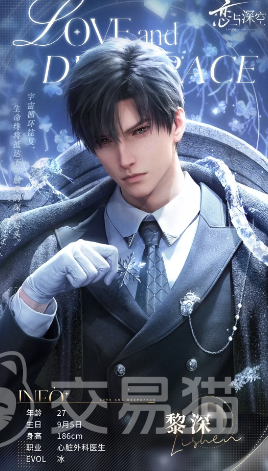 黎深是游戏中一个比较沉稳内敛的男主之一了,而且和黎深的相遇都是靠后面的一些剧情,为什么说黎深特别沉稳,其实也跟黎深自身的职业和年龄有一定的关系,黎深的年龄在游戏中是最年长的27岁,而且在游戏的背景设定下,黎深是一个外科医生,主攻的是心脏,虽然没有绚丽的发色,但是黑色的头发,给人一种非常安稳的感觉,不过黎深这个角色可能是因为职业的问题,在游戏里自身的属性属于冰属性,在战斗中比较擅长使用冰属性来对敌人造成控制效果,同祁煜比较相似的是两个角色都属于辅助类的!
