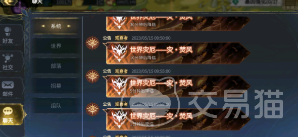 世界灾恶的存在其实在时间上会有限制,而且每一天全部都会通过系统播报告诉每一个玩家,每一只世界灾厄都只会在对应的时间出现,因此只要玩家集合所有的力量在规定的时间内,把眼前的boss全部的打败,如此就能够有机会成功。