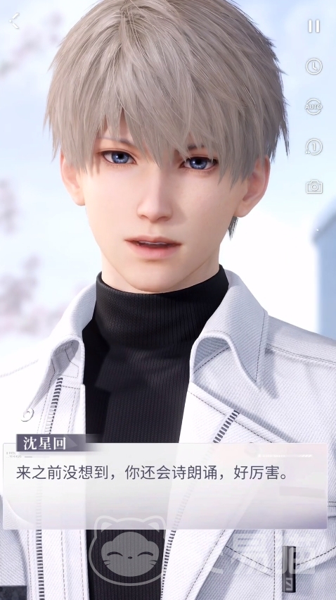 在对话的过程中还可以根据自己的喜好来选择不同的回答,并且还能通过右上角的暂停来回忆之前的剧情,后续你也可以凭借这点来让剧情发展到不同的走向上面去。