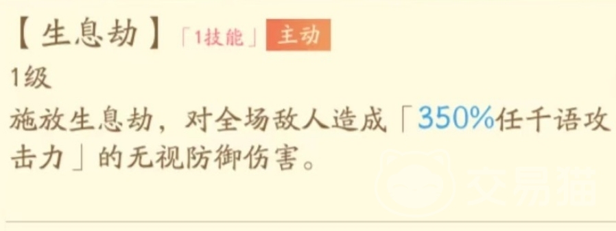 一技能是生息劫,可以对敌人造成无视其防御的AOE伤害,并且加成最高可达500%,因此无论是面板输出还是实际的输出都非常之高;二技能则是对后排友军提供额外的灵力恢复和能量恢复效率,所以队伍的续航表现得以进一步增强!