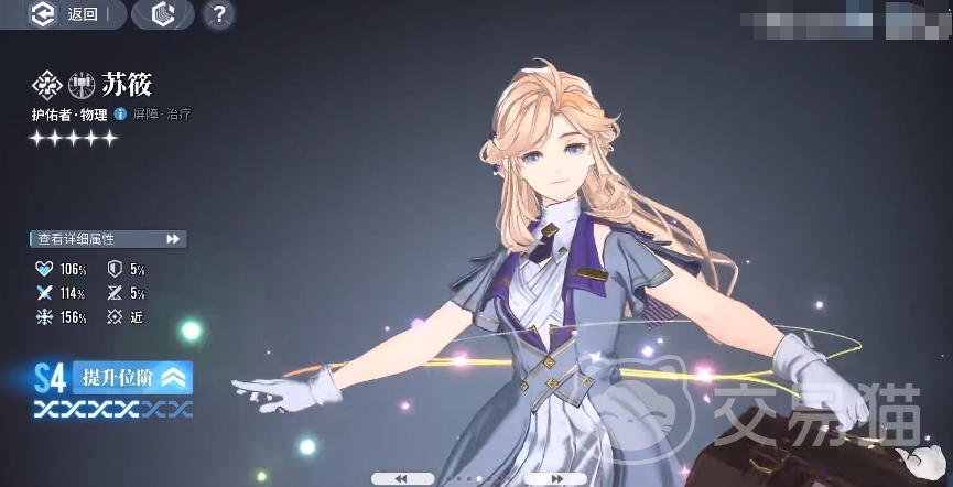 苏筱是一个五星护佑者角色,本身的定位偏向于提供屏障和治疗,所以她肯定是属于一个辅助型的角色,在基础属性这块,她比较突出的是生命和防御,所以队伍不用分出太多精力来保护她,因为她的基础身板就足够出色。