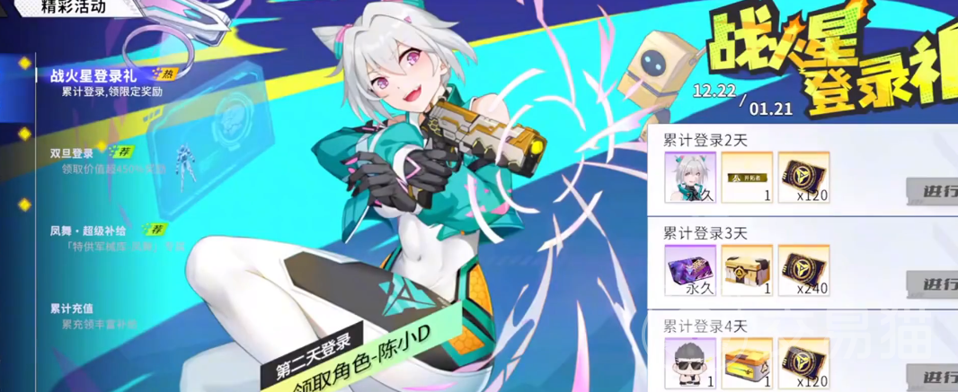 武器,新兵手册,这是一种新手任务玩家只需完成一些简单的挑战就可以免费获得三把永久的武器,分别是主武器M4孤爆星、副武器激光剑,孤爆星以及闪光弹孤爆星。这些武器都是前期比较实用的武器,可以让玩家在游戏中有一定的优势。等级奖励玩家每升一级,都可以获得一些金币和钻石以及一些武器的试用卡。