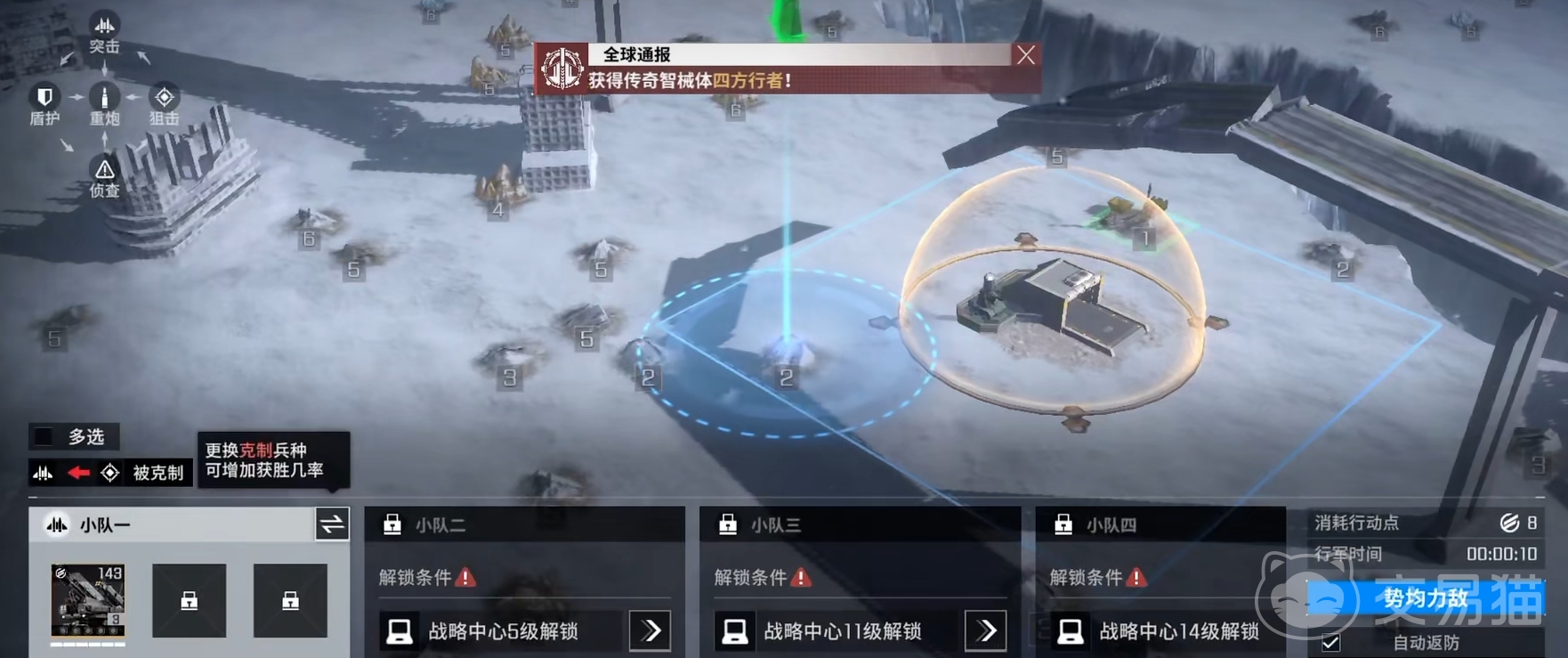 同时,为了要保证地下城的运行,我们需要时刻关注净水、钛钢、石墨和硅晶这四样基础物资源。我们重建地下城,招募军队都需要使用这些资源。而资源的获取,也是游戏的一大玩法之一,基本上都是要通过不断的外出探索寻找新的矿点来获得产出。然后并在基地当中升级,我们的战略中心来建造新的矿产加工设备产出矿产。