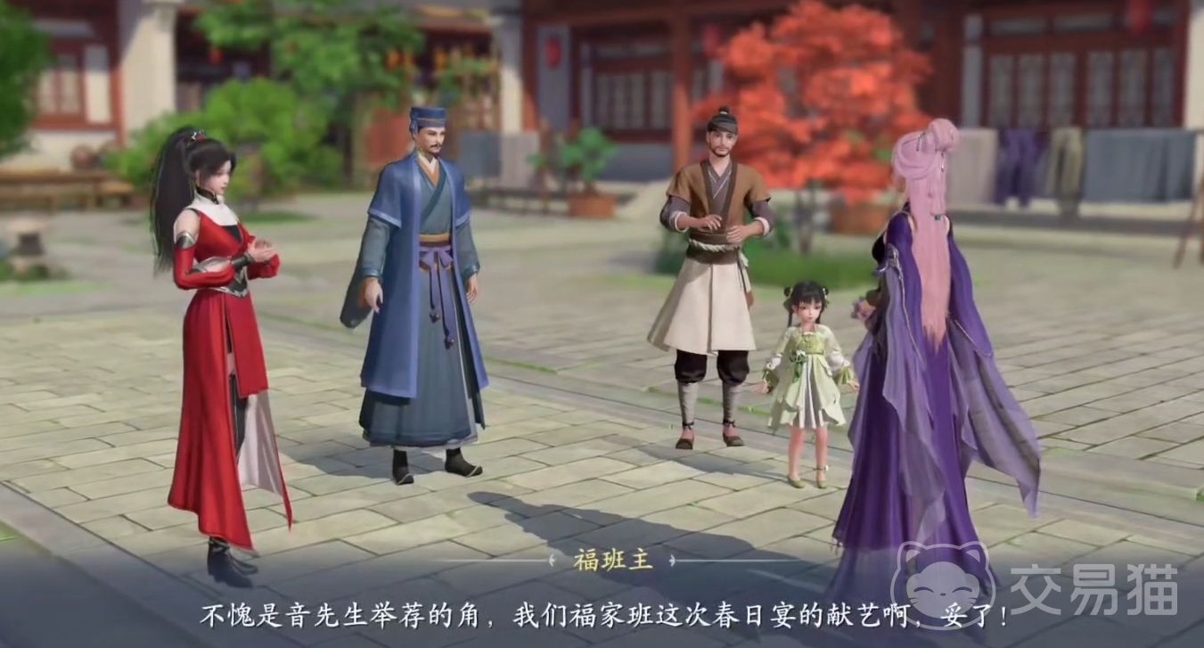 刚刚来到京城的时候,经师兄引荐,来到福家班,扮作小旦在春日宴上献艺。同时,此处也是游戏当中关于舞蹈的新手教程之一。在福家班日益唱曲练功,暗中打探消息,察觉到福家班当家小生红袖的异样,了解幕后有黑手想对阁主和尊后下手。于是在宴会前期,与师兄一起合力解决了隐藏在暗处的祸端,随后将计就计在宴会上照常演出,并在最后时刻阻止了红袖的刺杀。