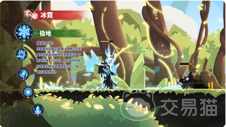 先来看她的第一个技能——极地,首先可以每秒给自己回复20的能量,等到能量积攒到100的时候,就可以发动这个技能了,可以利用这些能量创造一个极地的区域,在这个区域之内的敌方怪兽的移动速度降低20%,创造出的这个区域可以维持4秒。