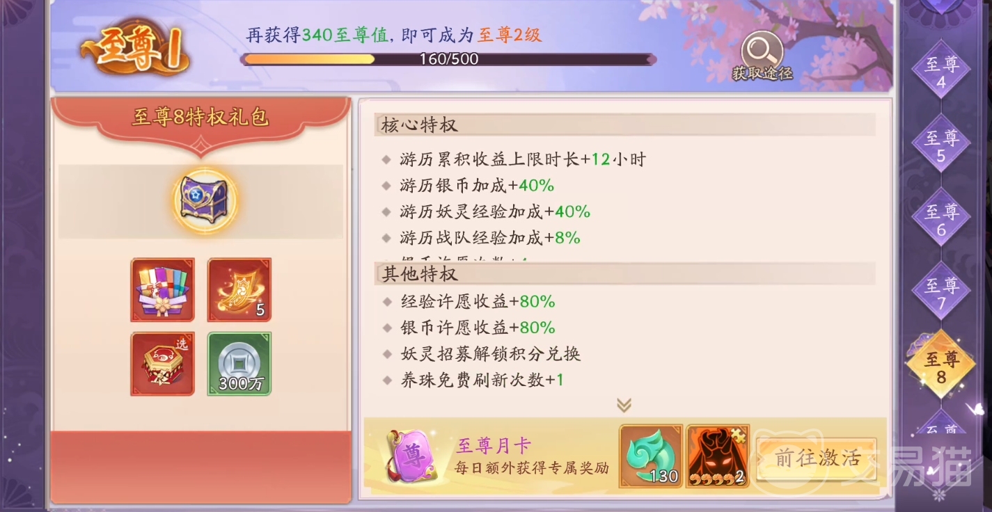 第二个值得氪金的是月卡,通过解锁鱼卡可以每日获得一定数量的至尊值和传说妖灵的碎片,这两项东西都是非常有用的,能让你加快阵容的成型速度,也能帮助加速角色的提升。
