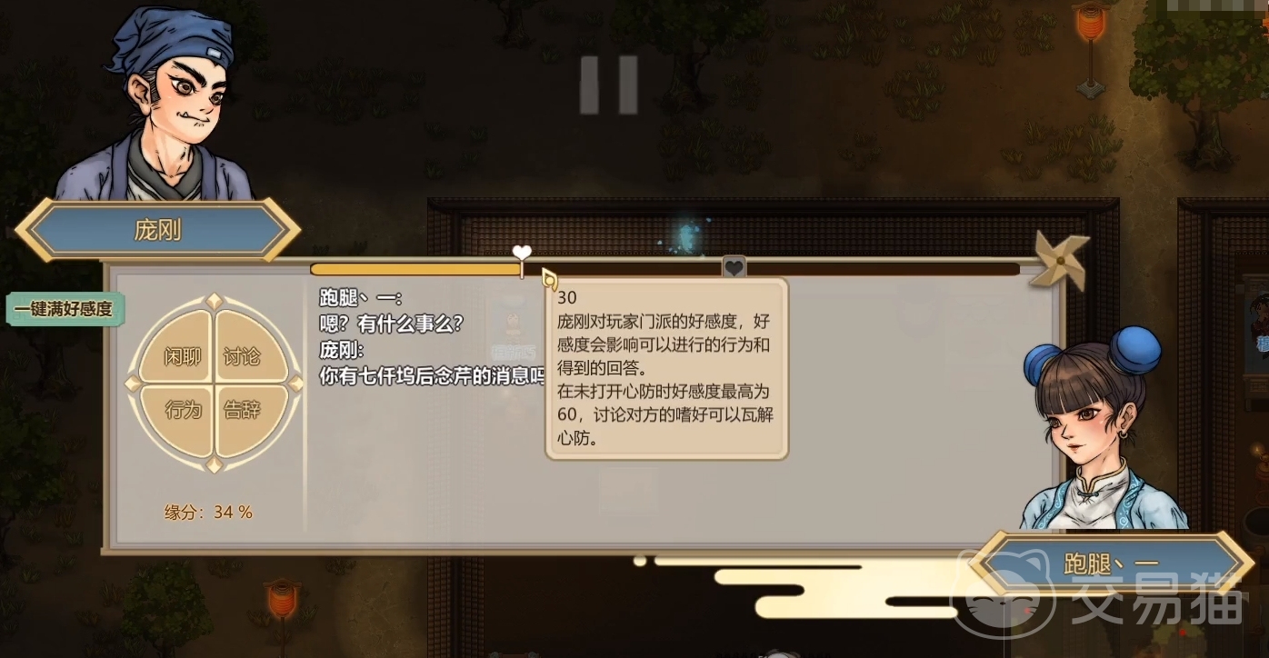 找到他之后让跑腿的过去与其闲聊,主要是刚开始的时候只能闲聊,其他的功能需要好感度高了之后才能解锁,所以一直与其闲聊直到好感增加到30的时候,就可以解锁旁边的“讨论”选项。