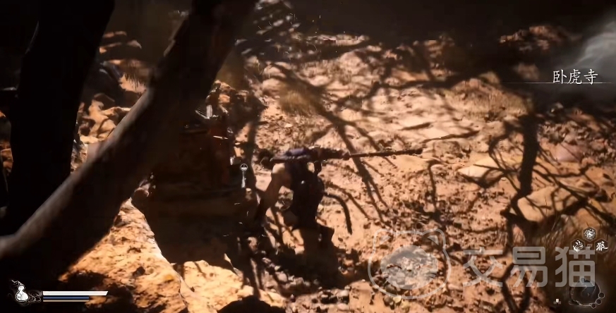 第三关是“头目·虎先锋”,玩家一开始会来到一片充斥着砂砾和枯树的黄土地上,在这片土地的前面有一间庙宇,通过旁边的提示可以得知这里是卧虎寺,而寺庙的名称其实就已经昭示了其中的boss会是一只虎妖,虎妖的体型极其庞大,并且初登场时正在茹毛饮血,言行中也尽显一个暴君的神采,它也是在线下试玩环节最凶残的一只boss,击败了不少玩家。
