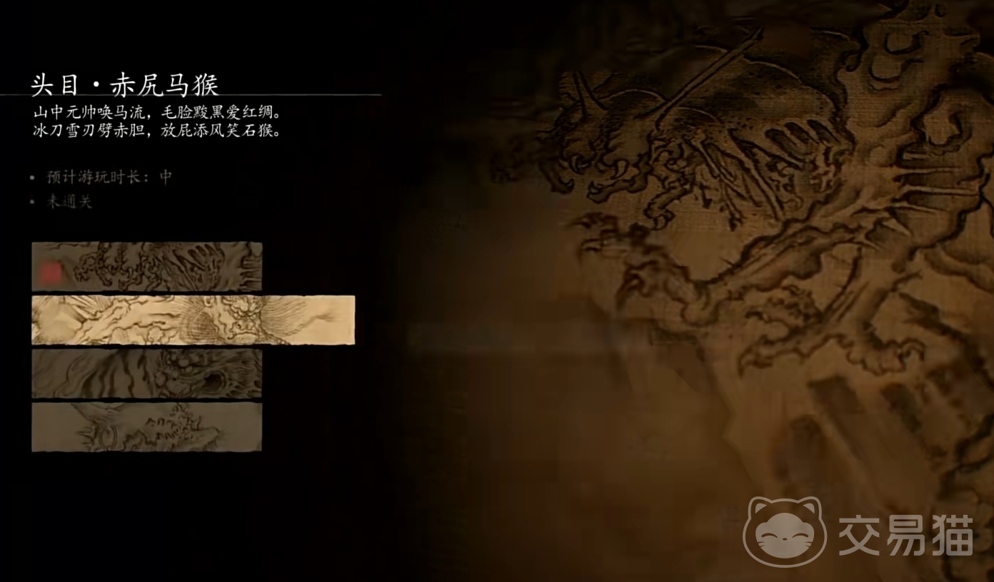 过了一段之后会看到boss赤尻马猴,它使用一把长刀,并且能通过砍向地面来挥出刀气,猴哥第一次与它的战斗赢得还算轻松,之后继续行进回来到一片建筑门前,剧情中猴哥提前听到里面有动静从而判断出其中的埋伏,进入后赤尻马猴会带着背后新生出的一对黑色翅膀与你展开二番战。