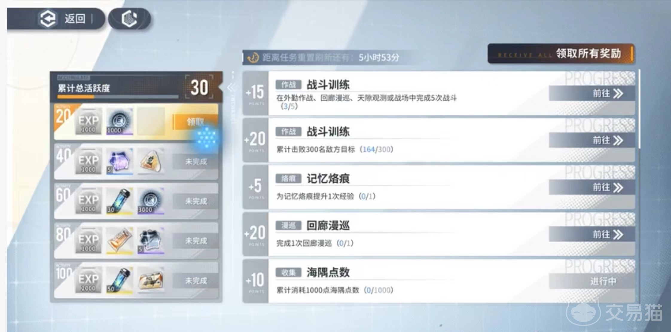 首先第一点,玩家进入游戏选择你的任务,点击查看你的总活跃度,查看战斗训练,如果战斗训练的数值过小,那么你需要开始战斗训练才可以进行记忆烙痕,它可以提升你的经验,也可以让你在故事剧情中更快速的提升等级。