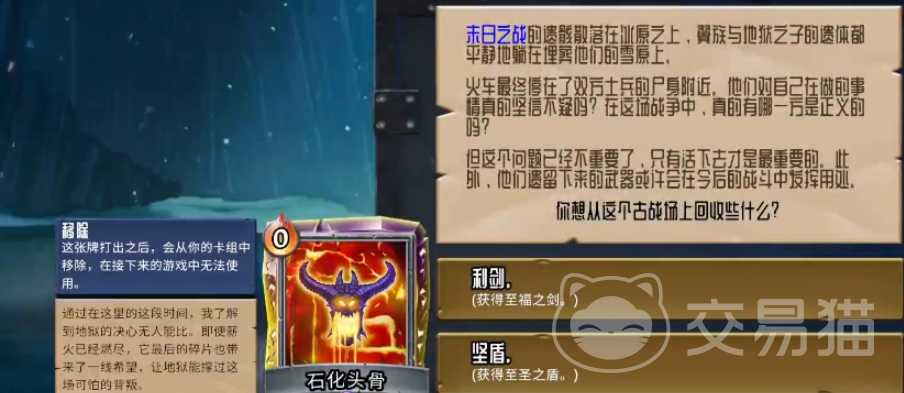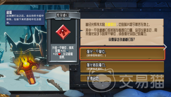 三层专属事件,可以选1个单位或者法术移除给1个NPC,这样5层之后NPC会给你1张在3层提交上去的卡升级石,如果不要的话石头会在6层的时候再次升级,这时候只能选择拿回这张卡。