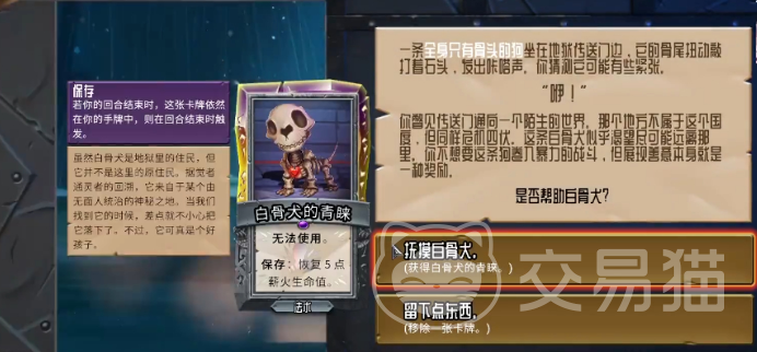 选择抓一张“骨犬青睐”或者是删掉1张,通常选择删1张,塞多了卡牌负担大。