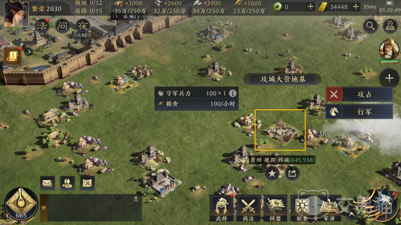 条件看起来简单,但是要想实现非常困难,因为其中不仅要面对npc守军,还要面对其他玩家的竞争。首先是要具有一定程度的攻城能力,攻城是游戏中很重要的设定,无论是攻占关卡、县城、郡府、州府,以及最后的都城洛阳,都需要利用攻城来占领。想要攻城时,选择好目标进行宣战,并且集结部队,攻占任意城门后就能完成城池占领。宣战后也会有倒计时,途中可以取消,开启宣战之后,盟友们点击攻城大营进行集结,根据部队实际兵力情况选择不同方式,有主力攻坚和攻城摧毁这两种选项。其中攻城摧毁是指参与到拆迁中,主力攻坚则是参与进攻城战斗,适合主力部队选择。