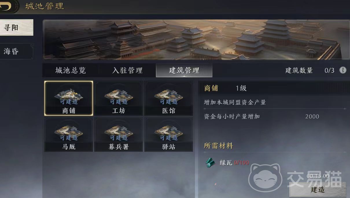 要想达到立国的条件占领州府城池,需要先从最小的县城开始,不断积蓄力量。占领城池后可以进行分封,之后成员就依靠该城池进行发展,包括进行建设,享受收益等,也可以迁城至附近。城池等级越高,能够建造的建筑物数量也就越多,种类也就越多,带来的收益自然更丰厚。城市还能生产辎重,已经攻占城池可以作为辎重起点和终点,辎重对于大型战斗来说非常重要。在运输过程中还要面临其他玩家的干扰,尤其是拥有敌对盟更是如此,对方会在辎重车队路上进行抢劫,双方相遇就会进行战斗,战斗失败后进入重伤状态,不能参与进新战斗中,如果护送队伍都被重伤,则车队被消灭。