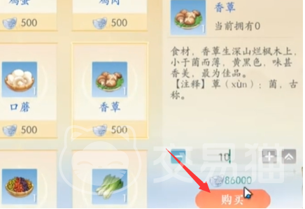 在制作时还需要了解所需要的原材料,主要是选择三种菌菇还有油。获取原材料的方法很简单进入到商店可以看到厨师商店结合实际情况购买,在购买时还需要耗费对应的银锭。