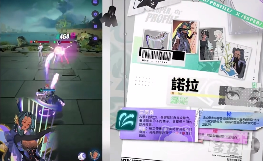技能方面三原奏能够攻击单个敌方目标三次,同时根据演奏曲目的不同,大家所能获得的效果也会有差异,其中“极”每次能给予目标3%的真实伤害,“缓”可击退目标100%行动值,最后就是“散”在攻击的同时驱散目标一个增益。