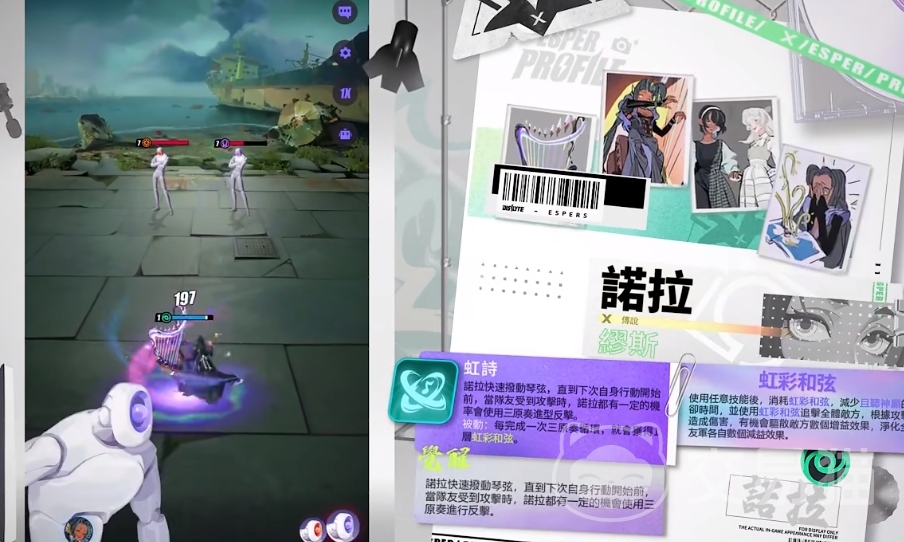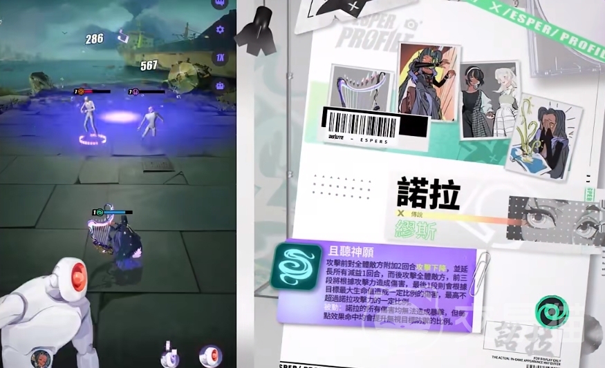 技能虹诗在反手这块很不错,在队友受到攻击时,能够有30%的几率触发诺拉的反击效果,对于敌方血量较少的敌人,往往能够直接就通过反击来带走对方,所以有她在还是非常不错的。