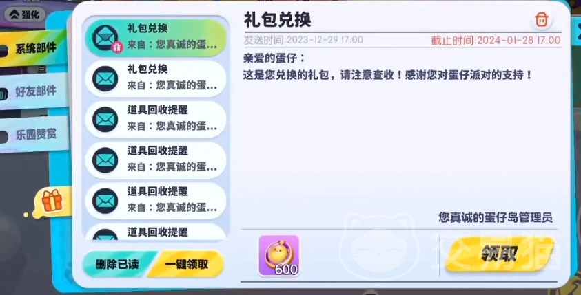 查看该邮件时,会发现它右下角有黄色的“领取”选项,通过点击它即可领取这些蛋币,蛋币的用途有很多,更加推荐大家积攒起来后去购置一些自己喜欢的时装或者动作,这样可以优化自己的视觉体验!
