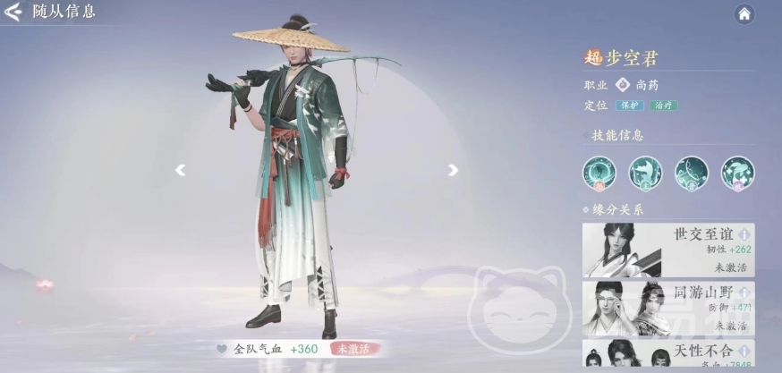 ②步空君+槿紫+月见+荀阳郡主:这是一套非常全面的阵容,其中阵中的步空君和月见都是非常厉害的治疗型角色,前者可以通过主动技能和怒其技分别提供减伤回血和护盾,后者则能不断提供单体回血和群体回血,队伍的续航和生存能力因此得到大幅度的增强。