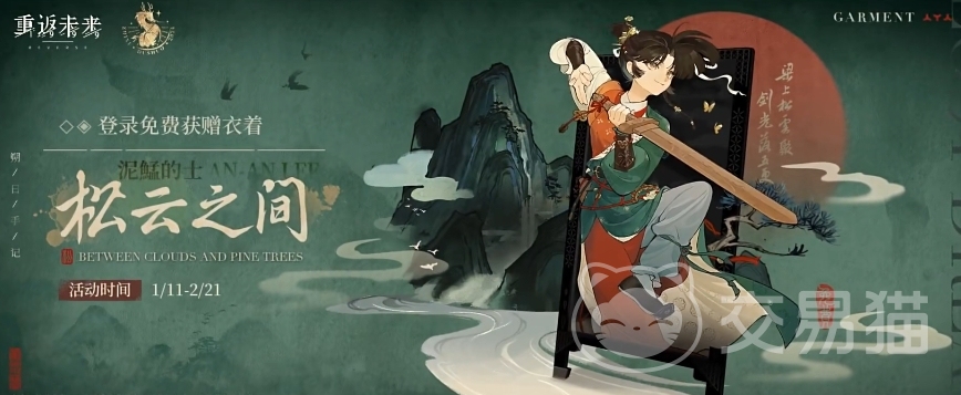 此外,在1月11日~2月21日期间登录游戏还能免费获赠泥鯭的士的衣着“松云之间”,这套衣服和他原本的装扮可谓是大相径庭,其充分彰显了古代传统的东方神韵,同时手持的木剑也让人感受到一股清新自然的质感。