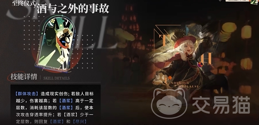 不过这招用完后曲娘会进入醉意状态,这个状态没法使用技能,同时也没法行动,这个状态只会持续一回合,后续升阶可能会提升,但被至终仪式攻击后会直接解除。