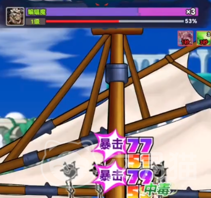 如果遇到需要跳跃的时候,我们只需要点击屏幕两次,便可以进行跳跃或者是二段跳了。之后会触发我们去往彩虹岛的剧情,但是在飞空艇上面的时候,我们受到了蝙蝠魔的攻击。这个时候我们附近会有一些NPC一起帮助我们战斗。蝙蝠魔的难度不高,它总共的血条只有5行,我们现在的攻击力不是很高,只能慢慢磨将其磨死。接着我们顺利来到了彩虹岛,开始了正式的旅程。
