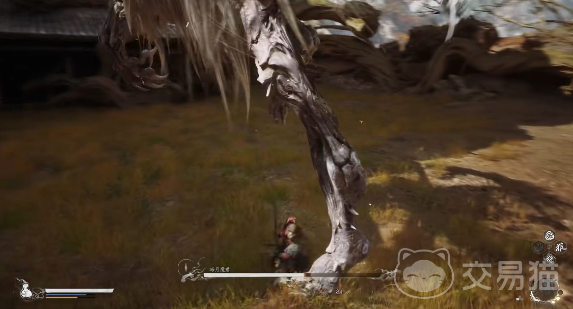 晦月魔君一开始是从一个巨大的卵中蹦出来的,它出场时会挥出一大片锐利的羽毛进行攻击,大家可以操控主角矮身翻滚轻松躲过,之后晦月魔君还会衔接一次飞踢,这里可以侧跳躲开,但不要离它太远,因为之后它会陷入僵直,你正好可以趁机去倾泻自己的火力。