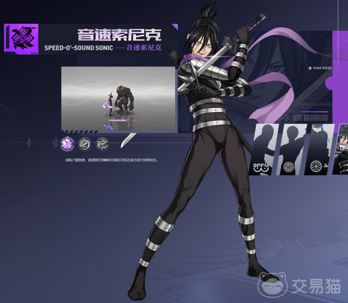 第三名:音速索尼克是一个自称为忍者的杀手,他的速度是他最大的武器,他可以在瞬间移动,产生残影,甚至超越音速。除了超高攻速之外还可以吸收对手的力量,稀有度是ssr,搭配性比较一般。音速索尼克是一个非常有趣的角色,他可以根据对手的实力来调整自己的实力,他可以不断地变强,直到达到怪人化的状态。